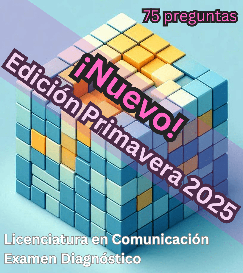 - Examen versión de 25 reactivos tipo EGEL la cual incluye cuatro secciones: Periodismo, Productos Comunicativos, Comunicación Organizacional, y Publicidad